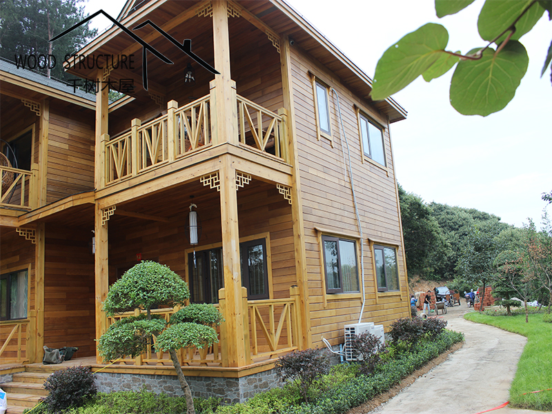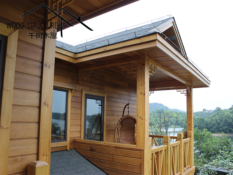 信阳木屋项目位于风景秀美的国家4A级景区南湾湖风景区内,中式木屋风格,上下两层,建筑面积为199.68平方米。