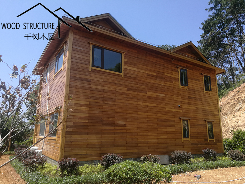 为不负客户信任,此中式木屋主材全部进口。墙体龙骨为38*140J级加拿大SPF,外墙挂板为无节加拿大西部红柏,美国杜邦呼吸纸,巴西进口LP定向结构刨花板,东方雨虹防水卷材,内装选用东鹏瓷砖,圣象木地板。采用国标2*4工法,由我司江苏施工班组历时50天匠心筑造完成。