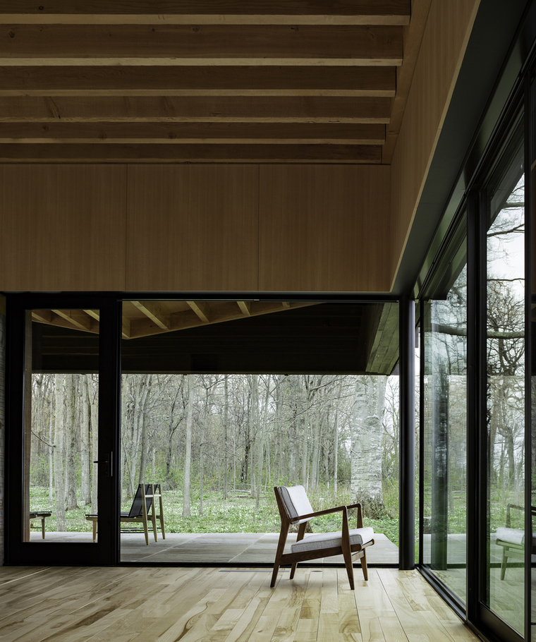 密歇根州特拉弗斯城的EnvironmentArchitects (AOR)设计了一栋栖息在木从中的