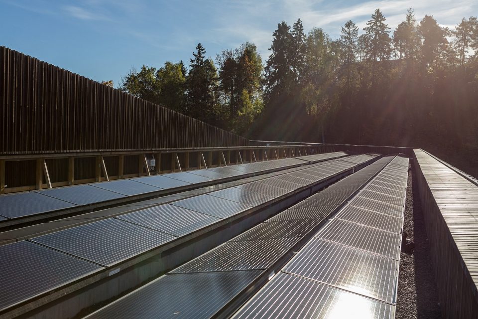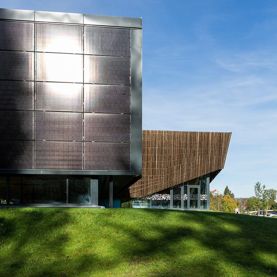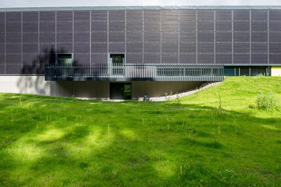 被动式的设计使建筑在能源利用方面变得更加高效,具体体现在建造方法、隔热层和建筑形式上。除此之外,设计还强调了能源的再利用,其中以热水供暖最为突出。650平方米的太阳能板和场地中的15个地热井共同将来自基岩的热能输送给建筑,在夏季还能将多余的热量传递到地表下方。