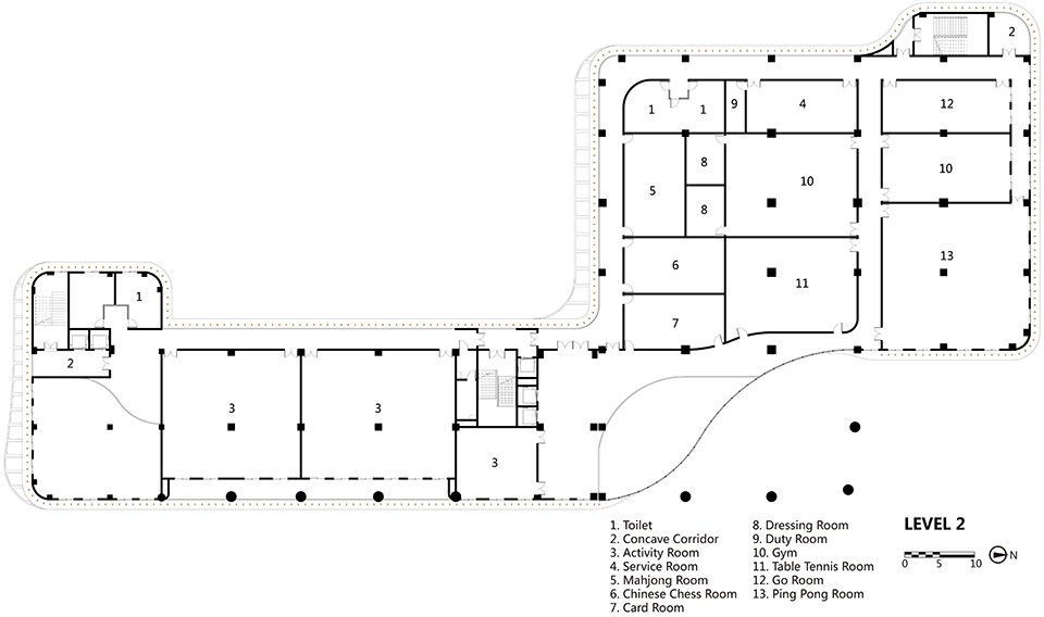 建筑的理念根源于对项目背后的人文内涵的思考:建筑师希望要创造一个适于退休人员的空间,而这些退休者的青年时期大多是在文革中度过的。尽管历史对文革的评价是负面的,但文革时期形成的“集体式生活”多少还是为那个时代留下了些温暖的记忆。退休者对于命运多舛的时代的归属感是建筑师对于现代生活的孤立与冷漠做出批评的立足点。