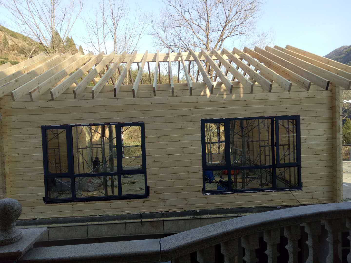 梁柱工厂加工好,现场不需要连接件,木头直接连接,所以来安装非???。柱子一般采用100*100左右即可。梁结合布局跨度实际计算。