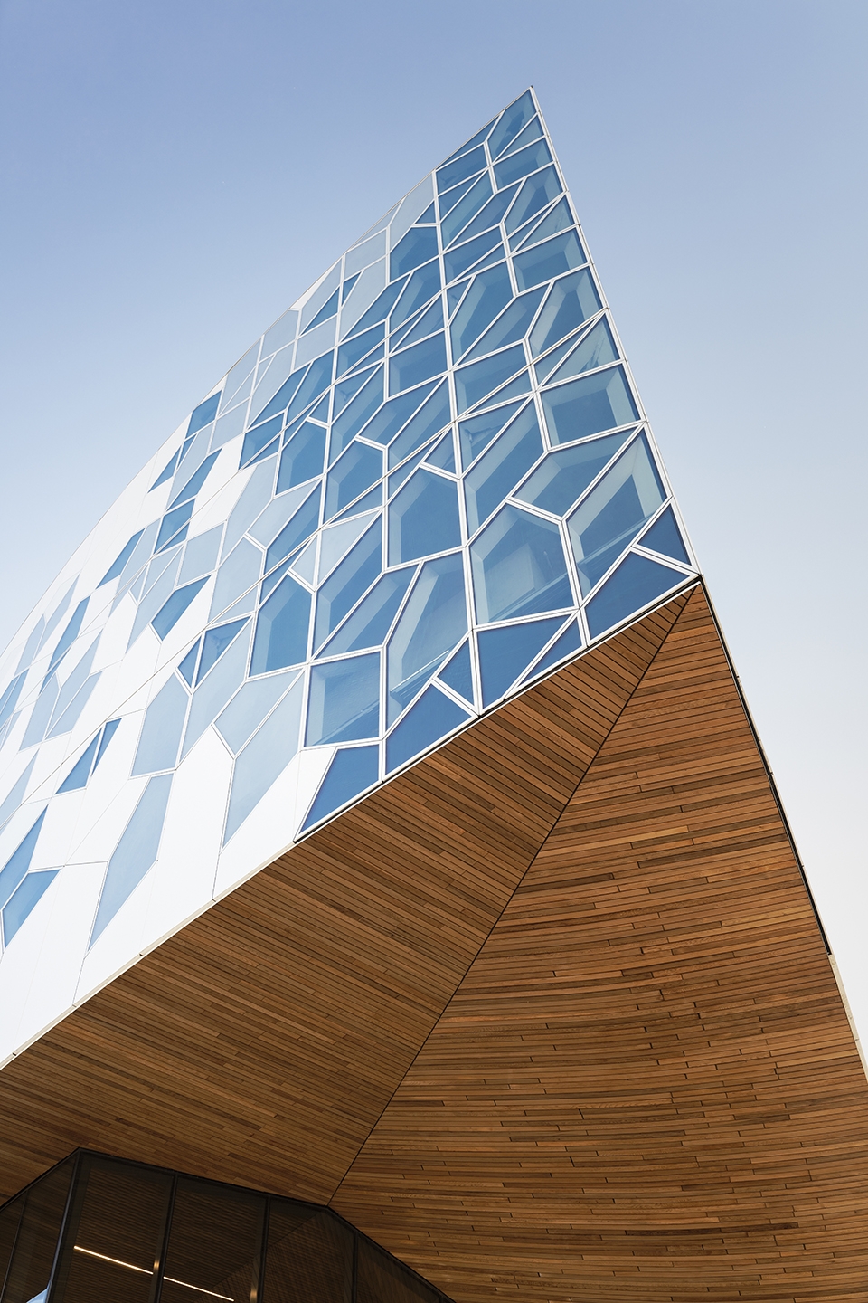 ▼三层玻璃幕墙由模块化的六边形图案组成