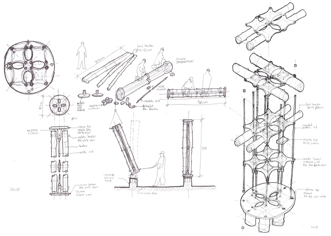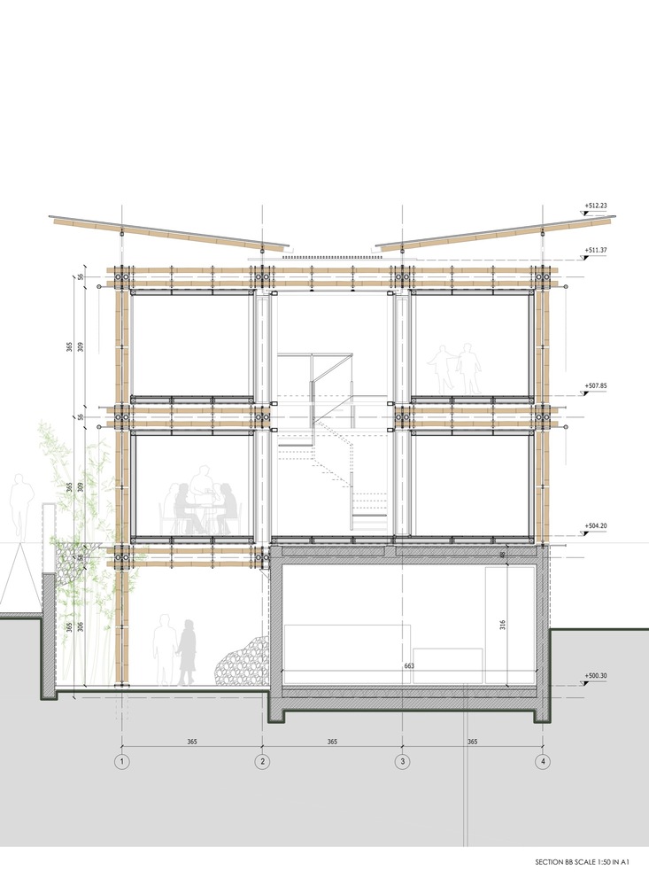 对于房子的结构,我们探索了以竹子为建筑材料的新方法。对我们而言,可持续发展不仅仅是使用竹子等天然材料,而是设计适当的施工方案:
