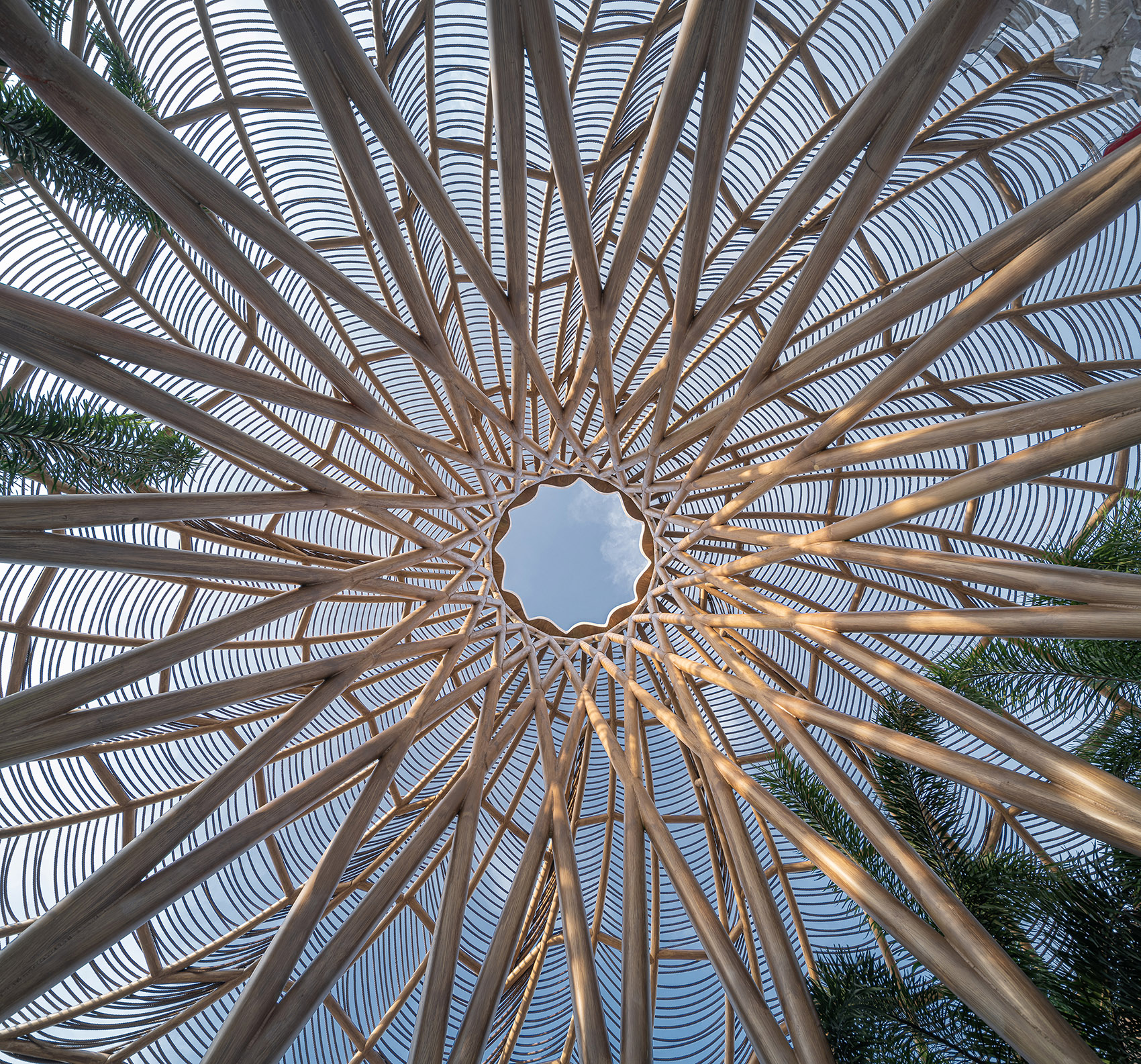 营造冥想与静心思考的核心空间,自下而上、内重外轻的视线向上牵引,是本设计场所精神性营造的核心用意。置身其间,看着浮云流动,让人忘却外部世界的喧嚣,聚焦于眼前纯净的视界。