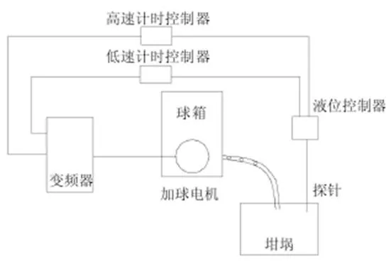 2.1.1.3加球控制 在目前的生產(chǎn)中,坩堝拉絲工藝的間斷式加球控制是在正常生產(chǎn)中影響溫度最主要的因素之一。而周期式加球控制就會(huì)打破系統(tǒng)中溫度的平衡狀態(tài),導(dǎo)致系統(tǒng)內(nèi)的溫度平衡被一次次打破而又一次次被重新調(diào)節(jié),使得系統(tǒng)內(nèi)的溫度波動(dòng)幅度較大,溫度精度很難控制。關(guān)于怎樣解決和改善間斷加球所出現(xiàn)的問(wèn)題,成為連續(xù)加球是改善和提高系統(tǒng)穩(wěn)定性的另一個(gè)重要的一面。因?yàn)槿绻馗G液體控制這種方式花費(fèi)較多,在日常的生產(chǎn)生活中得不到推廣,所以人們經(jīng)過(guò)努力創(chuàng)新,提出了一種新的方法,在探針測(cè)液面的前提下,將加球方式改為連續(xù)非勻速加球。,就可以克服原系統(tǒng)的弊端。在拉絲時(shí),為了降低爐內(nèi)的氣溫波動(dòng),改變探針和液面的接觸狀態(tài)來(lái)調(diào)節(jié)加球的速度。通過(guò)輸出計(jì)的報(bào)警保護(hù),確保加球的過(guò)程安全可靠。準(zhǔn)確合適的高低速調(diào)節(jié)能夠確保液體保持很小的波動(dòng)。通過(guò)這些改造,保證了這個(gè)系統(tǒng)在恒壓、恒流的控制方式之下也能夠使得高支紗支數(shù)波動(dòng)在很小的范圍之內(nèi)。